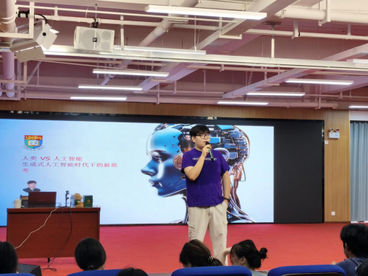 为帮助同学们深化对人工智能的认知,进一步点燃其对前沿科技的探索热情与求知兴趣,2025年9月22日至23日,我校在图书馆报告厅举办“人类VS人工智能——生成式人工智能时代下的新思考”主题演讲活动。