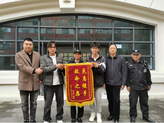 2025年9月22日,我校学生赵易勇在教室自习饮用奶茶时,不慎将颗粒状物体呛入气管,导致突发性窒息,面色青紫、呼吸困难,情况万分危急。教学楼安保人员冉启书在巡逻中接到求助后,秒级响应,迅速赶赴现场,立即采用海姆立克急救法施救,同时拨打校医务室电话请求支援。校医到场后,因异物位置较深,现场施救效果有限。冉启书立即协助医护人员将学生转运至医院。因送医及时,赵易勇同学经抢救后脱离生命危险。10月22日,赵易勇同学向冉启书敬赠锦旗,以表感谢。
