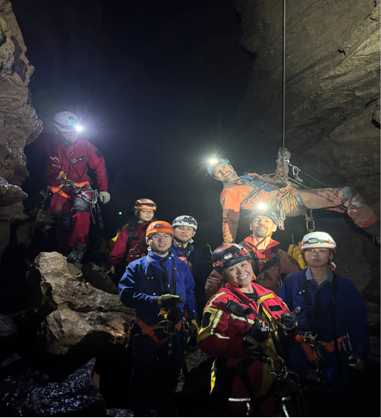 我校学子已经连续三年参加双河洞国际联合科考,主要承担协助科学家采集地质样本、寻找化石、开展3D扫描及洞穴拍摄等任务。考察中,同学们依托在校所学的洞穴知识与绳索技术深入地心,与国内外专家携手克服重重困难,完成多次探索与发现,其专业表现受到山地资源研究所、贵州省洞穴协会、中国洞穴专业委员会及《中国国家地理》杂志等机构专家的一致好评。