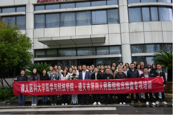 为全面提升遵义市第四人民医院临床教师的教学水平,推动教学同质化进程,2025年11月8日至9日,我校在遵义市第四人民医院举办临床师资专项培训。培训以“提升教学本领,推进同质发展”为主题,围绕教学设计、课堂管理、实习带教、质量评价等多个方面展开系统讲授与交流。