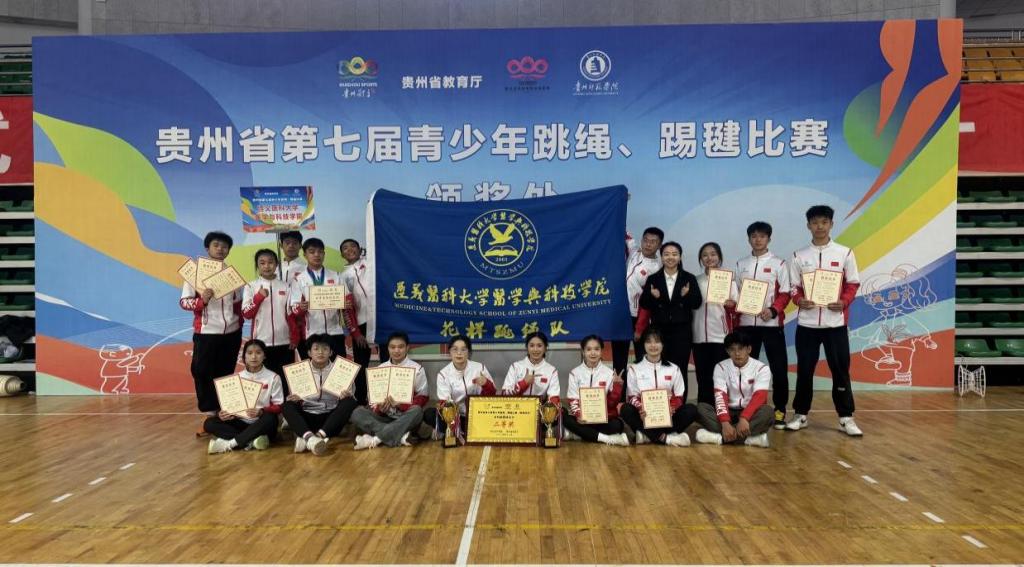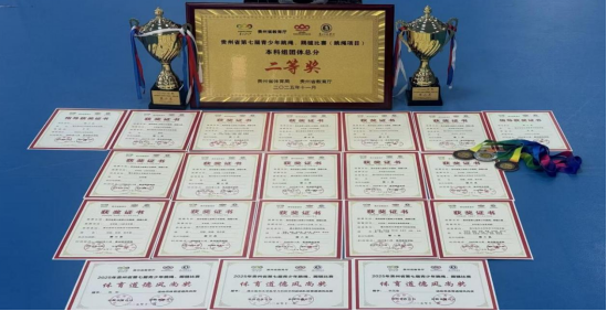 2025年11月27日至30日,由贵州省体育局、贵州省教育厅主办,贵州师范学院承办的贵州省第七届青少年跳绳、踢毽比赛在贵州师范学院圆满落幕。我校花样跳绳队学子凭借扎实的训练功底、默契的团队协作与出色的临场发挥,在全省14所高校参赛队伍中脱颖而出,不仅斩获多个单项与集体项目奖项,更以总分优势荣获“团体总分二等奖”,充分展现了我校学子积极向上的精神风貌与卓越的运动素养,为学校赢得良好声誉。