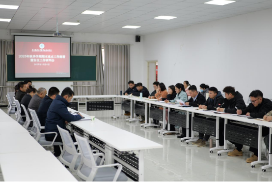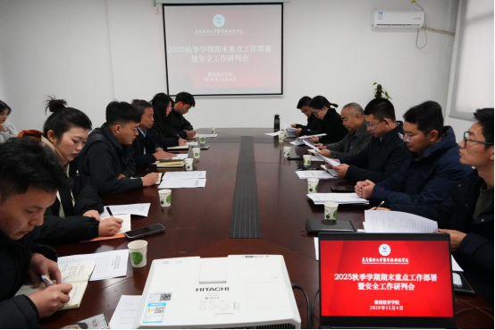 为统筹推进期末各项工作落地见效,筑牢校园安全防线,确保学期各项任务圆满收官,2025年12月2日至5日,学校党委书记、常务副校长周万津,校长葛正龙,党委副书记、副校长王中磊带队前往各二级学院分批次召开2025年秋季学期期末重点工作部署暨安全工作研判会。各二级学院分管校领导,各职能部门和二级学院负责人出席会议,相关行政人员、专兼职辅导员参加。