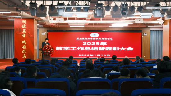 2026年1月15日,我校在图书馆报告厅召开2025年教学工作总结暨表彰大会。学校领导班子全体成员、各职能部门和二级学院负责人、全体教师及学生代表齐聚一堂,总结教学成果,表彰先进典型,谋划未来发展。大会在庄严热烈的气氛中拉开序幕。