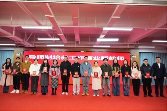 随后,大会对在导师制培养工作中表现优异的教师予以表彰。江波、刘晓丽、刘爱东三位教师在导师制工作中悉心指导、严谨负责,被评为“优秀指导教师”;陈长梅、张小娟等6名青年教师在导师制培养下快速成长、表现突出,获评“优秀青年教师”。同时,为圆满完成导师制培养阶段任务的徐科、徐瑞屿等29名新教师颁发结业证书,肯定他们在入职成长期间的努力与进步。