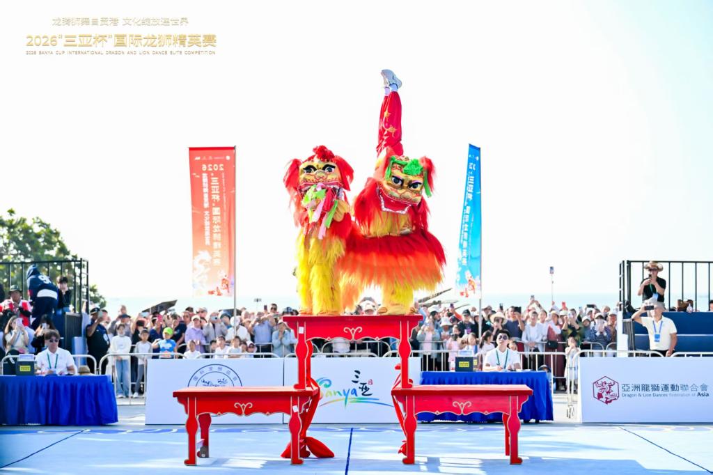 2026年1月18日至19日,以“龙腾狮舞自贸港,文化绽放连世界”为主题的2026“三亚杯”国际龙狮精英赛在三亚大东海旅游区成功举办。该赛事为高规格国际性赛事,由三亚市人民政府主办,获国际龙狮总会、国家体育总局社会体育指导中心、中国龙狮运动协会等单位指导支持,吸引全球24支队伍、约300名运动员同台竞技,设北狮自选套路、舞龙自选套路、南狮高桩自选三大项目,全程遵循国际龙狮总会审定规则,尽显专业性与公平性。
