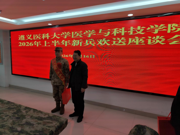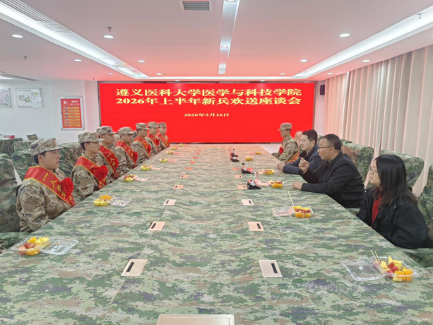 为热烈欢送即将入伍的新兵,传承拥军优属优良传统,2026年3月16日,我校举行新兵欢送座谈会。学生工作部(处)部(处)长汤佰东、武装部副部长谭绍胤、武装部工作人员曹龙及辅导员陈普秀、李雪蓥与即将入伍的新兵面对面交流,送上学校的真挚祝福。