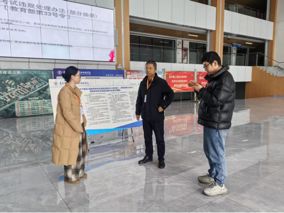 为确保考试的顺利进行,学校制定了详细的考试工作方案和应急预案,对考试流程、各部门工作协调以及监考人员培训等方面进行了全面规划。考试期间,学校领导高度重视,学校校长葛正龙,副校长高德健、张朝伟到现场巡视,检查考场秩序及考务人员工作情况。