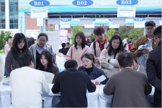为深入贯彻落实国家关于高校毕业生就业工作的决策部署,精准搭建人才供需对接桥梁,促进毕业生更充分、更高质量就业,学校联合遵义市人力资源和社会保障局、贵阳市政协办公厅,于2026年4月3日13:00—16:00,在学校图书馆前广场举办“扩容提质强服务,春季攻坚促就业”2026届毕业生春季校园双选会。本次双选会是学校积极响应教育部“春季攻坚”行动号召,持续优化就业服务体系、系统护航毕业生求职全过程的重要实践。