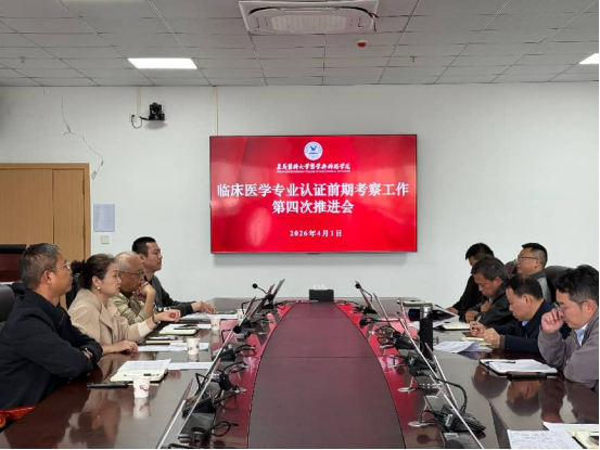 为进一步推进临床医学专业认证准备工作,2026年4月1日下午,学校在图书馆612会议室召开第四次推进会。学校党委书记、常务副校长周万津,副校长欧刚卫、高德建、张朝伟出席会议,相关职能部门及临床学院负责人参加会议。会议由副校长张朝伟主持。