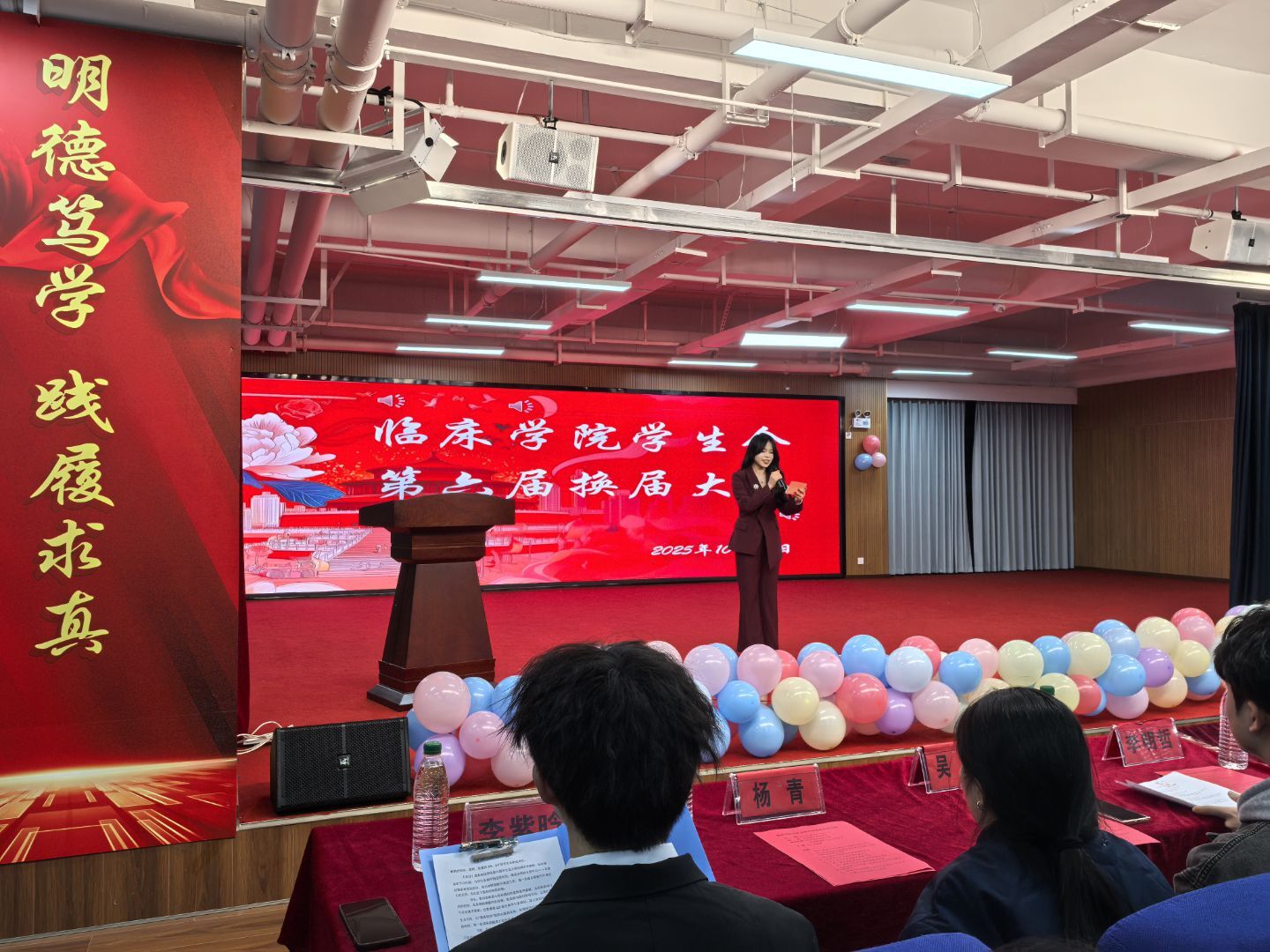 2025年10月27日,临床学院第六届学生会换届大会在图书馆六楼报告厅召开,标志着临床学院学生会工作正式完成新旧交接,开启服务同学、助力学院发展的全新篇章。临床学院教师代表与学生会全体成员参加大会,共同见证这一承载责任与希望的重要时刻。大会由王俊婷同学主持。