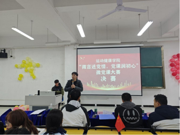 为深入学习贯彻党的二十大精神,扎实推进党史学习教育常态化长效化,纪念中国人民抗日战争暨世界反法西斯战争胜利80周年,弘扬伟大抗战精神,赓续红色血脉,筑牢信仰之基,2025年11月26日,运动健康学院学生第一、第二党支部联合举办“微言述党情,党课润初心”主题微党课大赛。本次活动由运动健康学院党总支主办,运动健康学院学生第一、第二党支部承办,旨在通过青年视角讲好党的故事、革命的故事、英雄的故事,推动党性教育走深走实、入脑入心。