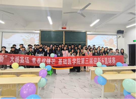 为丰富同学们的文体生活和凝聚团队力量,2025年11月10日,基础医学院“迎新杯”篮球赛在篮球场正式启幕,杨小凤老师为赛事主持授球仪式。历时五天,赛事顺利收官。11月25日,在3号教学楼第十六阶梯教室举行闭幕式。