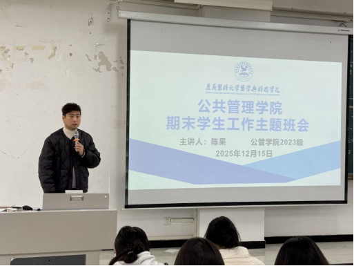 此次班会实现安全教育全覆盖、精准化,进一步提升了学生的安全防范意识和自我保护能力,为学生度过一个安全、健康、充实的寒假奠定了坚实基础。公共管理学院将持续关注学生假期动态,做好安全保障与服务工作,切实守护学生的身心健康与生命财产安全。(撰稿、摄影:周子熠;审核:一审彭洪福;二审杨云;三审王中磊)