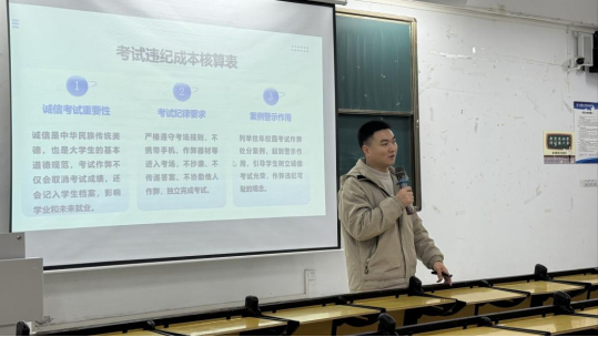 针对低年级在校生,各班级班主任聚焦诚信考试与日常安全,通过案例剖析、知识问答等形式,讲解寒假出行、居家消防等要点,严禁危险用电行为。辅导员田代荣、张吉结合近期针对大学生的网络刷单诈骗、虚假红包诈骗、培训贷诈骗等高发案例,拆解诈骗分子的惯用套路,引导学生树立“不轻信、不透露、不转账”的防骗意识,鼓励学生遇到可疑情况及时与家长、老师沟通,或向公安机关求助。同时,班会还关注学生假期心理健康,倡导合理规划时间、平衡学娱关系,鼓励学生积极参与社会实践、远离不良网络信息,保持乐观心态。