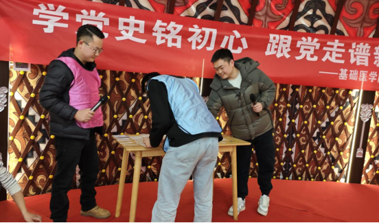 为增强基层党组织凝聚力与战斗力,丰富教职工文化生活,提升团队协作意识,营造积极向上的工作氛围,2026年1月14日,基础医学院以“学党史铭初心,跟党走谱新篇;凝心聚力启新程,并肩同行暖人心”为主题,开展党建带团建活动,基础医学院全体教职工参与。