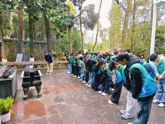抵达红军山烈士陵园后,全体师生整齐列队、肃立致敬。学生代表林泽杨介绍了陵园历史及革命英烈事迹,进一步加深了全体师生对红色精神的理解与感悟。随后,全体人员面向烈士纪念碑肃立默哀,依次敬献鲜花,表达对革命先烈的崇高敬意与深切追思。教师党员代表王加文讲述了龙思泉烈士扎根黔北、为民献身的感人事迹,带领全体师生向烈士三鞠躬致敬。同学们纷纷表示,将以革命先烈为榜样,把红色精神融入医学学习与医者使命,精进医术、坚守仁心,以实际行动践行医者担当、守护人民健康。