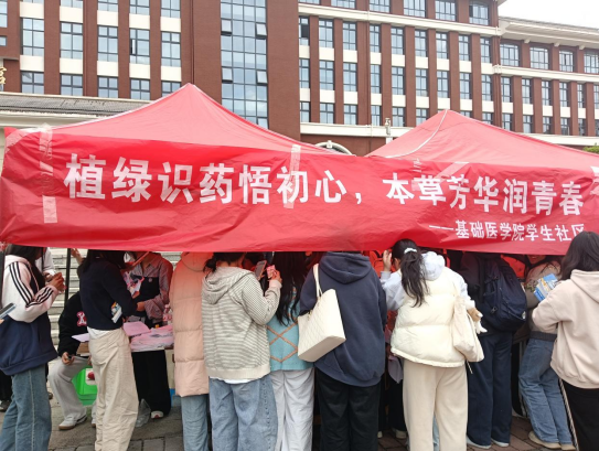 春风拂绿,本草含芳。为厚植中医药文化根基,提升学子药用植物识别专业素养,2026年3月30日,基础医学院在国旗台下举办“植绿识药悟初心,本草芳华润青春”药用植物鉴别系列活动,为全体在校学生搭建起专业实践与风采展示的优质平台,让课余时光浸润着本草清香与文化底蕴。