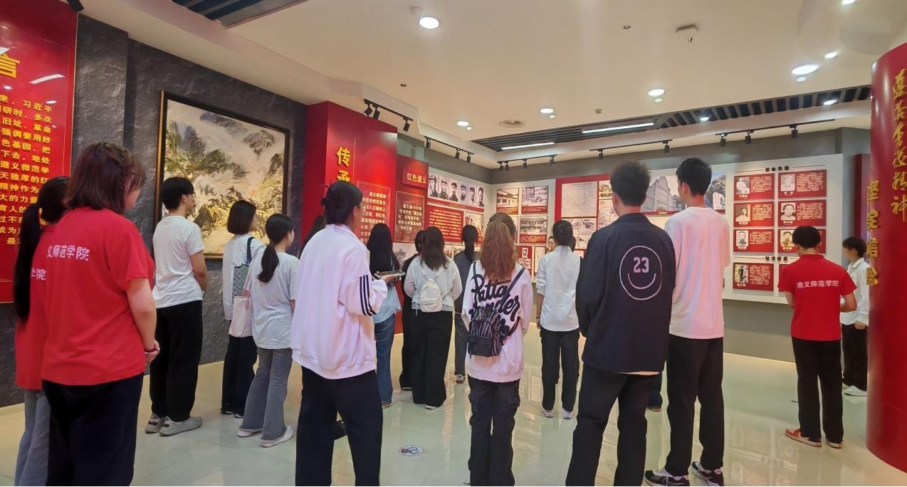 活动伊始,在遵义师范学院团委组宣部主任贾铮带领下,我院师生参观了以“红色基因薪火相传 红色文化铸魂育人”为主题的红色文化馆。馆藏丰富的历史文物、珍贵的图片资料及生动的场景复原,全方位展现了中国共产党在遵义这片红色热土上的光辉历程与伟大精神。在讲解员的细致引导下,同学们心怀崇敬,认真聆听每一段感人肺腑的革命故事,深切体悟革命先辈坚定的理想信念与无私的奉献精神。此次参观使同学们接受了一次深刻的红色文化教育,进一步增进了对党史的理解与对革命精神的传承意识。