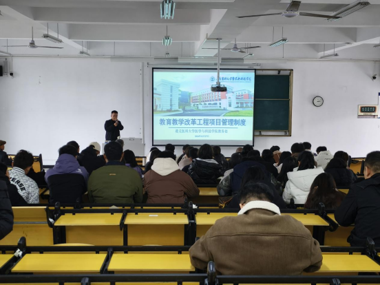 2024年12月27日下午14:30,学院教务处在二号教学楼举办了教育内容和课程体系改革专题培训。本次培训由教务处主办,教育教学质量控制中心协办,学院副院长张朝伟,教育教学质量控制中心主任、教师发展中心主任冯正中出席本次培训,全校105名教师参加此次培训。本次培训由教务处黄康老师主持并宣讲教育教学改革项目的管理办法,教育教学质量控制中心张柔老师从教改的概念、选题、研究方法及相关案例对老师们进行培训。最后教育教学质量控制中心主任、教师发展中心主任冯正中指出现在教改成果对论文很重要,老师们要高度重视教改项目质量,努力提升自己的业务水平;学院副院长张朝伟做培训总结,他指出教育教学改革是推动教师发展的重要途径,要理论联系实践把教改项目做好、做完善;注重教学改革的成果和质量,以改促教、以改促学,提升学院教学水平,助推学院教学高质量发展。