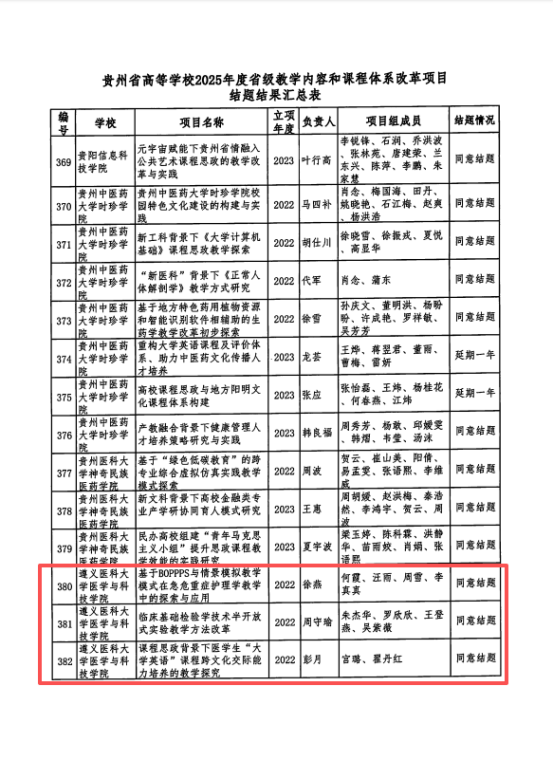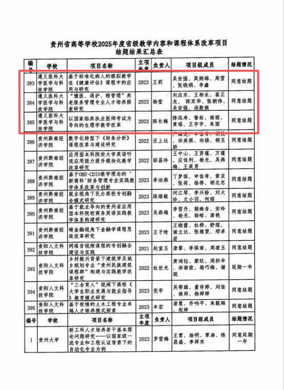 根据《省教育厅办公室关于公布2025年度省级教学内容和课程体系改革项目结题结果的通知》,我校申报的2025年度6项省级教学内容和课程体系改革结题项目,均顺利通过省级专家评审,圆满完成结题工作。