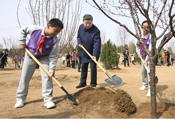 新华社北京3月30日电 中共中央总书记、国家主席、中央军委主席习近平30日上午在参加首都义务植树活动时强调,良好生态人人共享,也需要合力共建。要组织动员全社会广泛参与植树造林,为山川大地增添锦绣,让中国式现代化的底色更加亮丽。