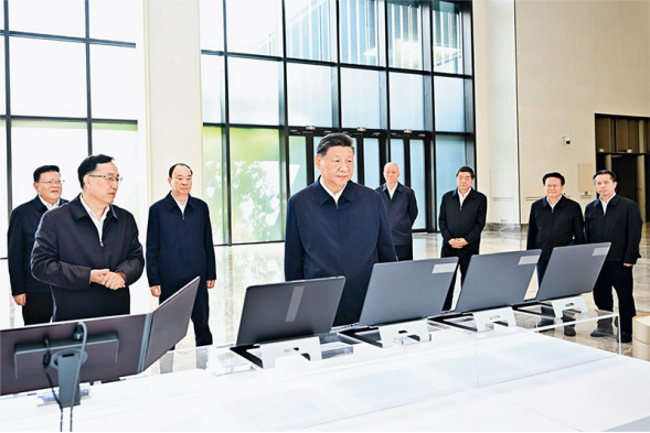 2025年11月7日至8日,中共中央总书记、国家主席、中央军委主席习近平在广东考察。这是8日上午,习近平在广州察看广东科技创新和产业创新融合发展成果展示。新华社记者 燕雁/摄