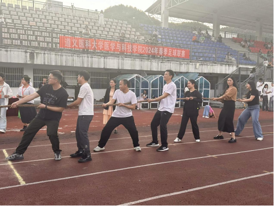 为促进学生德、智、体、美、劳全面发展,丰富校园文化生活,增强班级凝聚力,2024年5月19日至22日,临床学院团总支于田径场举办“凝‘绳’聚力展风采,团结共创新篇章”拔河比赛。