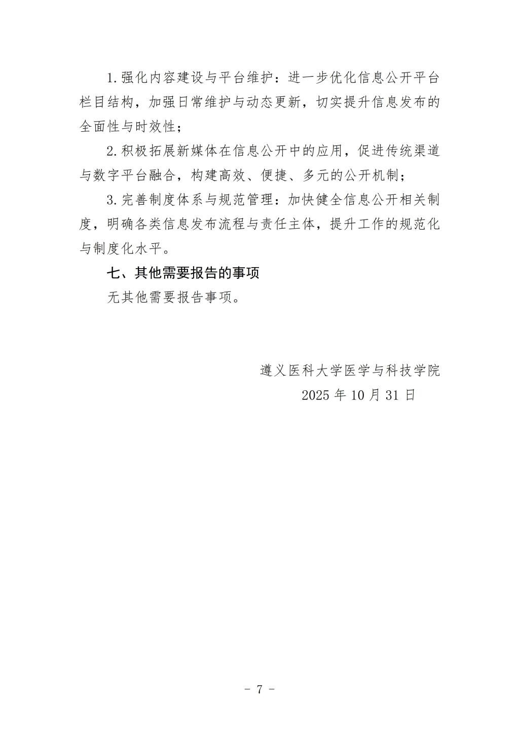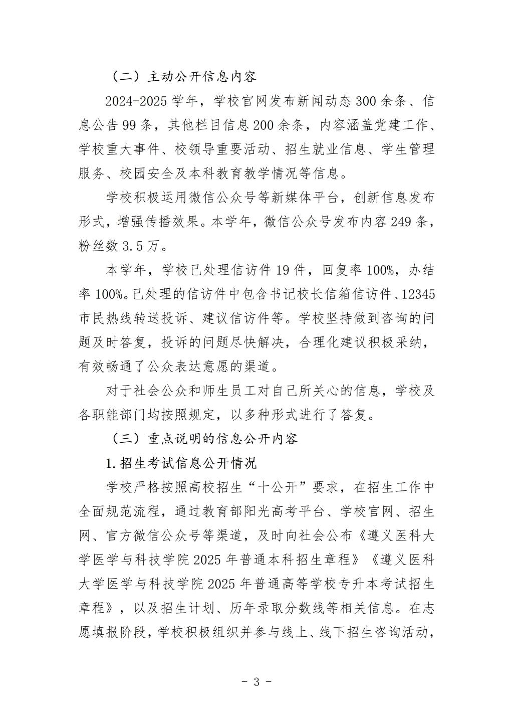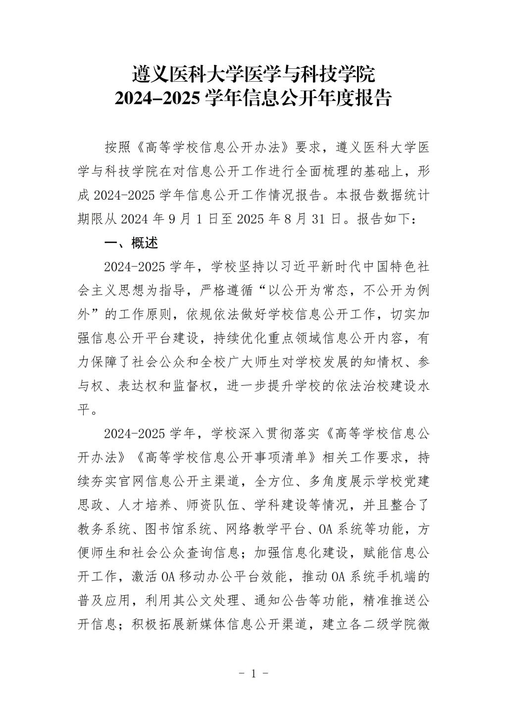 遵义医科大学医学与科技学院2024-2025学年信息公开年度报告