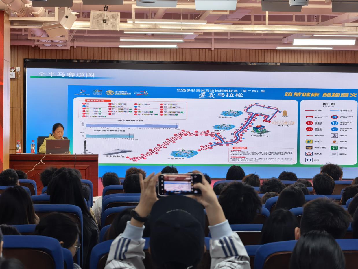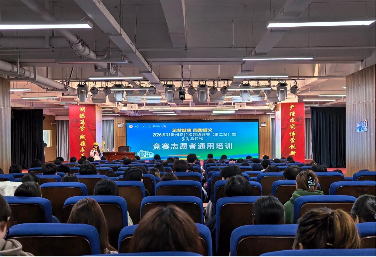 为保障2026年遵义市马拉松赛事圆满举办,全面提升志愿者专业服务能力,2026年4月8日,校团委在图书馆报告厅举行2026年遵义市马拉松志愿者专项培训,440余名赛事志愿者按时参加培训。