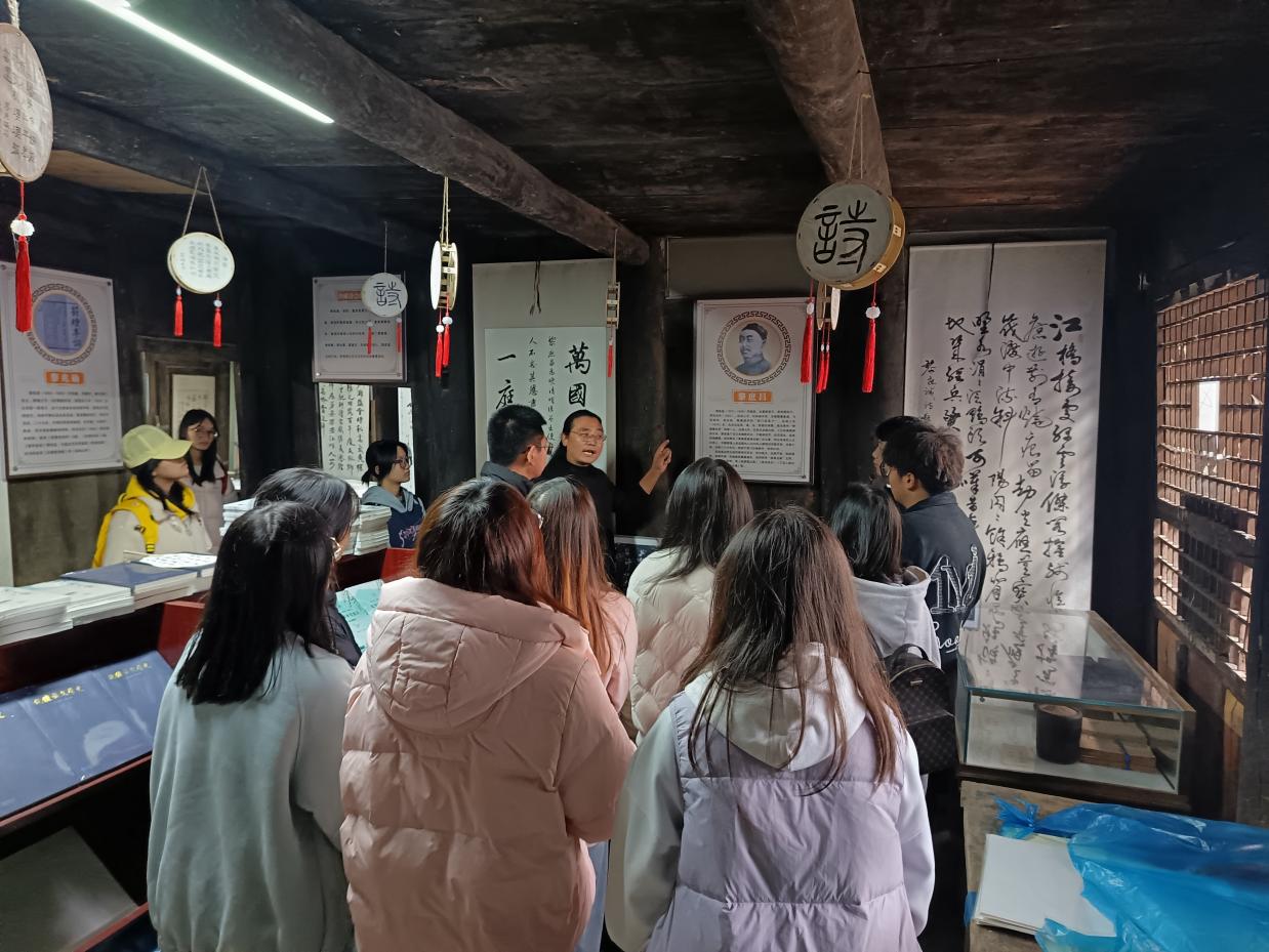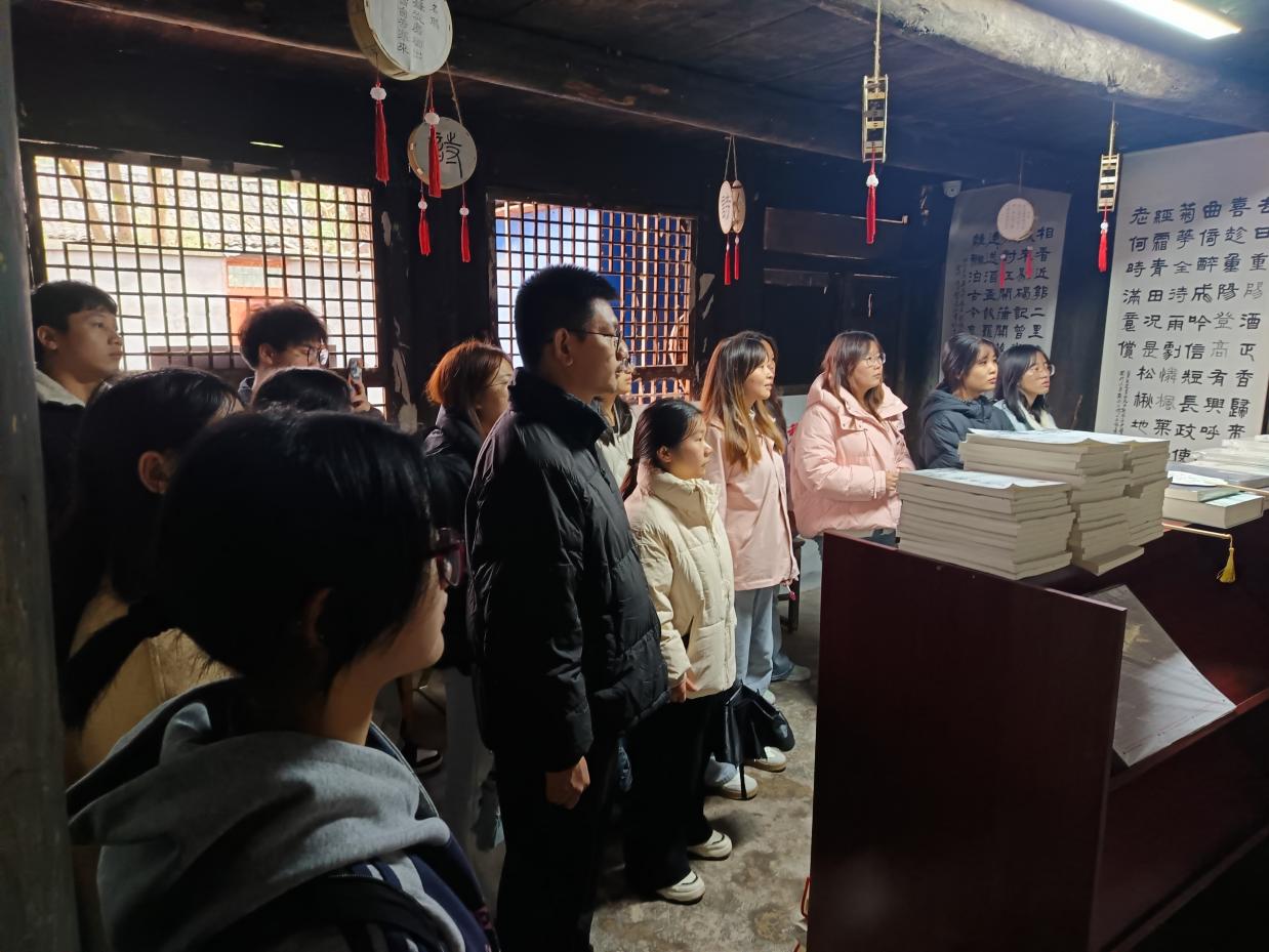 随后,同学们跟随讲解员走进锄经堂。锄经堂不仅藏书丰富,更传承着“读经如锄地”的治学精神。通过观摩展板、翻阅古籍,同学们深切体悟到先辈对知识的执着追求与严谨的治学态度。