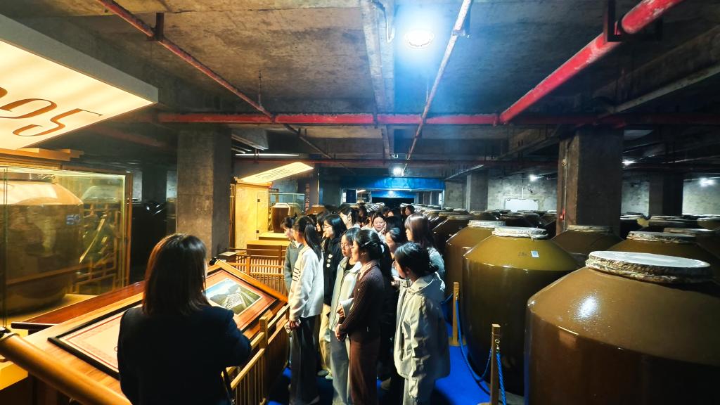 活动现场,贵州珍酒酿酒有限公司为同学们提供了专业的参观讲解与沉浸式体验服务。跟随讲解员的脚步,同学们走进酿酒生产区域,近距离观摩原料筛选、发酵、蒸馏等核心工序,聆听酿酒工艺的历史渊源、技艺要点与文化内涵,深切体会其中蕴含的匠心智慧。每一道工序的严谨细致,都让学子们深刻认识到酿酒这一非遗技艺的独特价值,进一步增强了对贵州本土文化的认同感和自豪感。