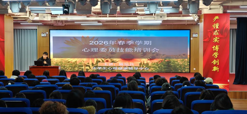 此次心理委员技能培训会,是学校深化心理育人工作、完善“学校-院系-班级-宿舍”四级网络机制的重要举措,既是对心理委员履职能力的精准提升,也是助力学生快速适应春季学期学习生活、缓解开学适应压力的具体行动。下一步,学校将以此次培训为契机,持续强化学生干部队伍建设,推动学生干部主动发挥朋辈帮扶作用,筑牢校园心理健康工作的“第一道防线”。(撰稿:高霖、熊旭兵;审核:一审汤佰东,二审杨云,三审王中磊)